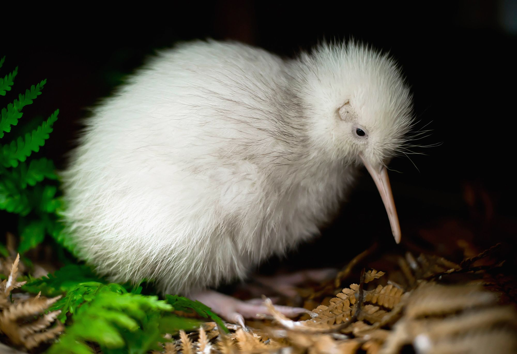 Bílé mláďě kivíka. Zdroj
